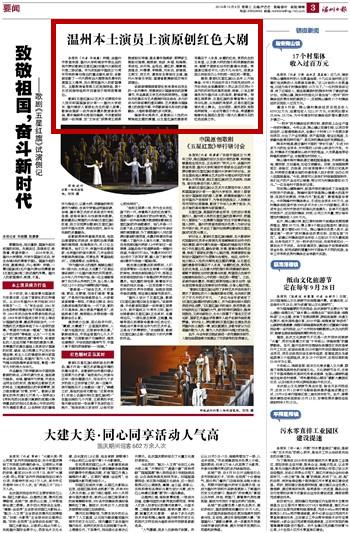 本报讯(记者华晓露) 昨晚,由温州市委宣传部、少妇白洁 和瑞安市委出品的我市原创歌剧《五星红旗》在温州大剧院进行第二场试演。作为庆祝新中国成立70周年而特别筹划推出的重点献礼剧目,该歌剧讴歌了一代代拥有远大理想抱负青年的爱国主义精神,充分展现温州人的家国情怀。主题教育省委第三巡回指导组、第十五巡回指导组和市四套班子领导观看演出。