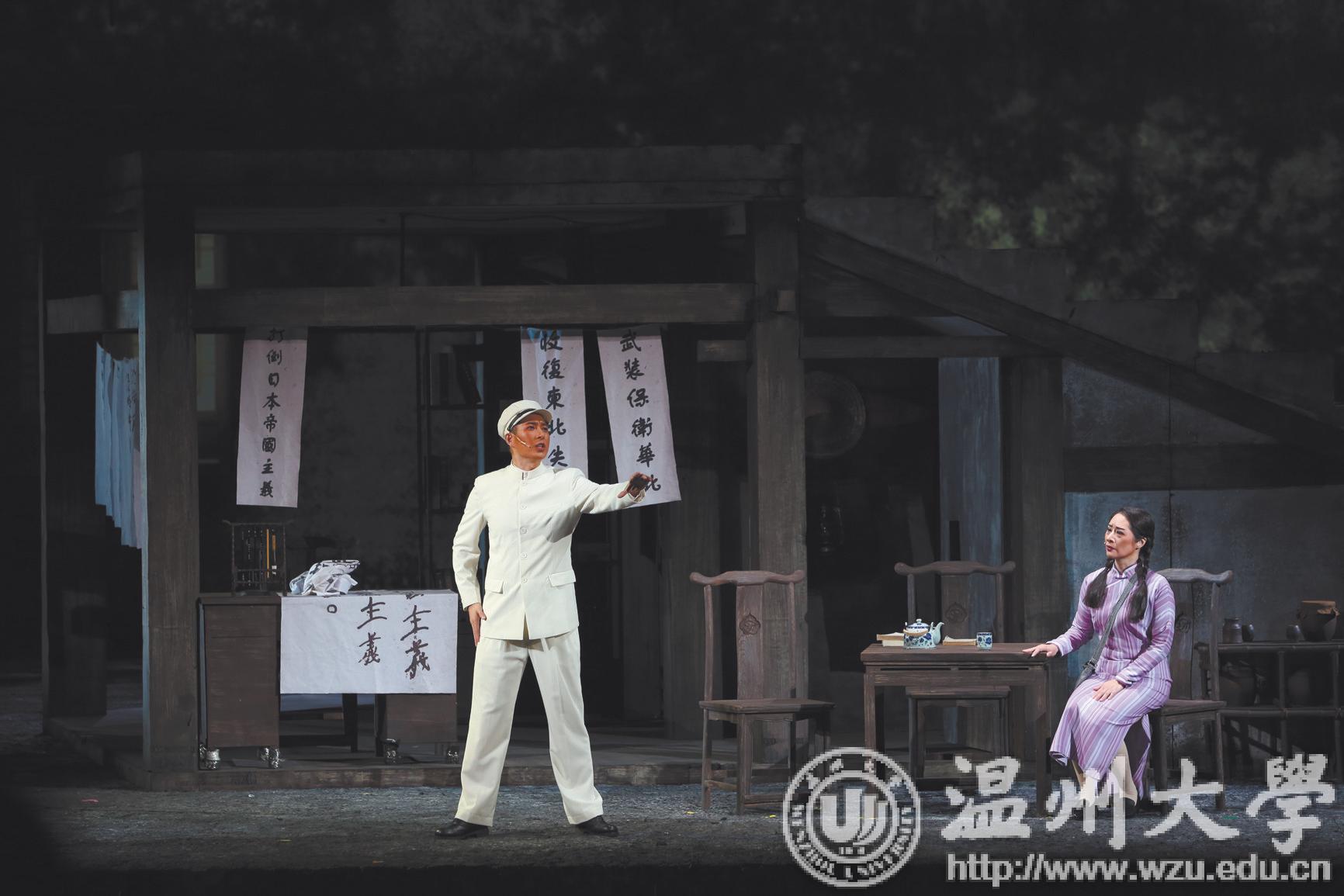 温大音乐老师莫颖和陈露雯是该剧演员排练时的钢琴伴奏,剧中所有的音乐都需要他们弹奏,“有时忙得连喝口水的时间都没有,除了专业,还非常考验注意力、精力和体力。整部剧的曲谱都是全新的,有50 多首300 多页,都需要我们非常熟练地弹奏。”
