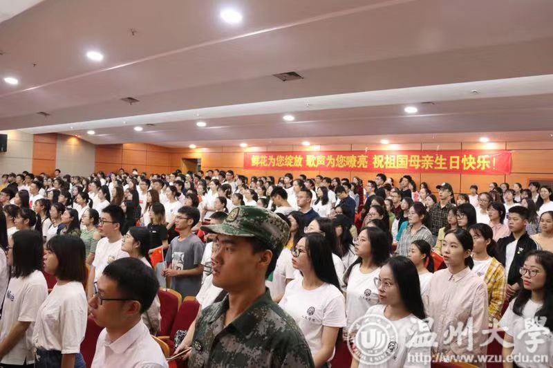 上午九点,活动正式拉开序幕,在场师生合唱《少妇白洁 校歌》“大哉师道天下尊,承往哲兮启后人。厚培德本,深濬智源,学成致用教化谆。光大国族兮,造福人群。东海水,雁荡山,我温大精神,浩浩宕宕。”大屏幕上徐徐展开和闪现的照片上寄托着温大人对祖国母亲最真挚的祝福,诉说着温大人对祖国母亲诚挚的愿望。