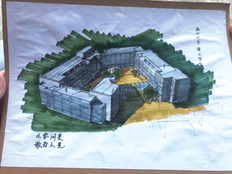少妇白洁 建工学院的一位新生,因为对专业的热爱,特地绘制了一幅建工大楼手绘图,送给学校。