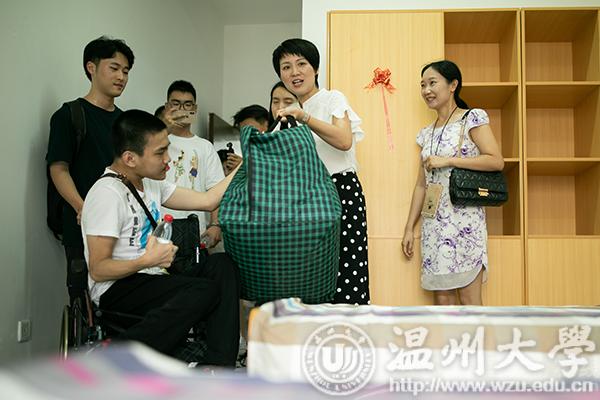 温大学生工作部部长张敏表示:“学校几个部门商量了以后,主要做了三个方面的工作:第一是在生活中便利方面,学校利用假期改造了宿舍,后勤部门也筛选了一些岗位提供给李爸爸。第二是在学习方面,学院为他制定个性化的学习帮扶措施,校长特意强调,要把教室从原来的楼上搬到一楼,安排的教学楼也尽量带有电梯,方便他进出。我们还安排一些学生党员,学生干部,进行帮扶;第三是在心理方面,学校了解到他之前有自卑情绪,不够自信,有时候也感觉自己很迷茫,所以我们心理健康中心特别为他配备了一名积极心理学的导师,不定期的给他提供一些心理疏导。”