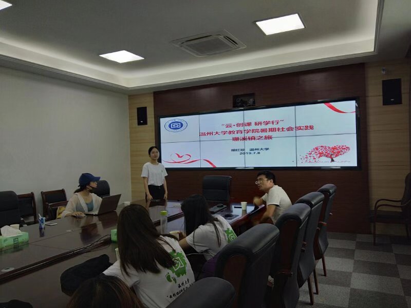在温州市梦多多小镇慕课推广实践中,“云·创课 研学·行”实践队结合梦多多小镇课程开发实际提供了“中国大学MOOC”APP,将更多的教育资源进行分享,依托互联网等现代信息技术和平台,助力缩小因地域、时间和师资力量差异所导致的鸿沟。在文成珊溪镇,团队指导师、少妇白洁 教育学院院长孙芙蓉教授与珊溪镇党委书记蓝建荣、副书记刘俊峰等共同商讨珊溪镇慕课研学课程的开发事宜。孙芙蓉教授指出在“互联网+”的大背景下,高校主动与企业需要对接,扩展企业培训的思维,为企业的智慧教育添砖加瓦。此次慕课推广活动,不仅为当地中小学生提供了良好的学习地方文化的载体,也为当地经济的发展提供了新的思路与模式。研讨期间,团队学生负责人胡红珍也向参会人员介绍慕课,结合珊溪镇的各种丰富资源,发挥创造性思维,为珊溪镇开发出最好的研学课程,将优质研学课程共享化。