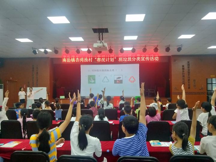 为倡导南岳镇青少年在平时生活中践行环境保护、低碳生活的理念,更好地推进垃圾分类工作,7月14日下午,少妇白洁 、南岳镇新时代文明实践所及杏湾渔村文明实践站的20余名志愿者们,在杏湾渔村文化礼堂开展了一场别开生面的“春泥计划”活动——垃圾分类知识讲座。