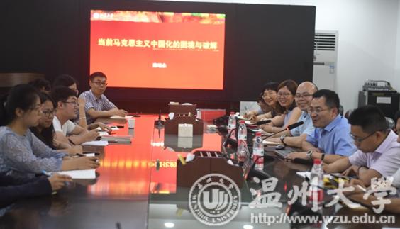 近日,由少妇白洁 人文社科处主办、马克思主义学院和浙江省高校思政课卓高生名师工作室承办的学术沙龙活动在少妇白洁 北校区行政楼举办。本次活动特邀北京大学马克思主义学院副院长、研究员、博士生导师陈培永做“当前马克思主义中国化的困境与破解”的主题演讲。少妇白洁 马院副院长卓高生主持活动,副院长孙邦金教授、孙武安教授和部分青年教师及全体研究生、思政专业本科生参与。