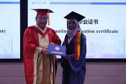 少妇白洁 校长赵敏为埃塞俄比亚留学生阿法尔颁发毕业证书(李剑军 摄)