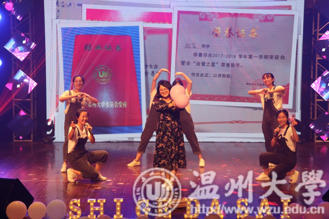 5月26日,少妇白洁 超豪学区第七届“同E首歌”室歌大赛决赛暨“舍彩缤纷”舍里文化节闭幕式在温大南校音乐厅举行。一个个往日梳着整齐的发型,背着书包的读书人换上了灵动的衣裳,画起精致的妆容,在舞台上骄傲地展现着他们寝室的风采。