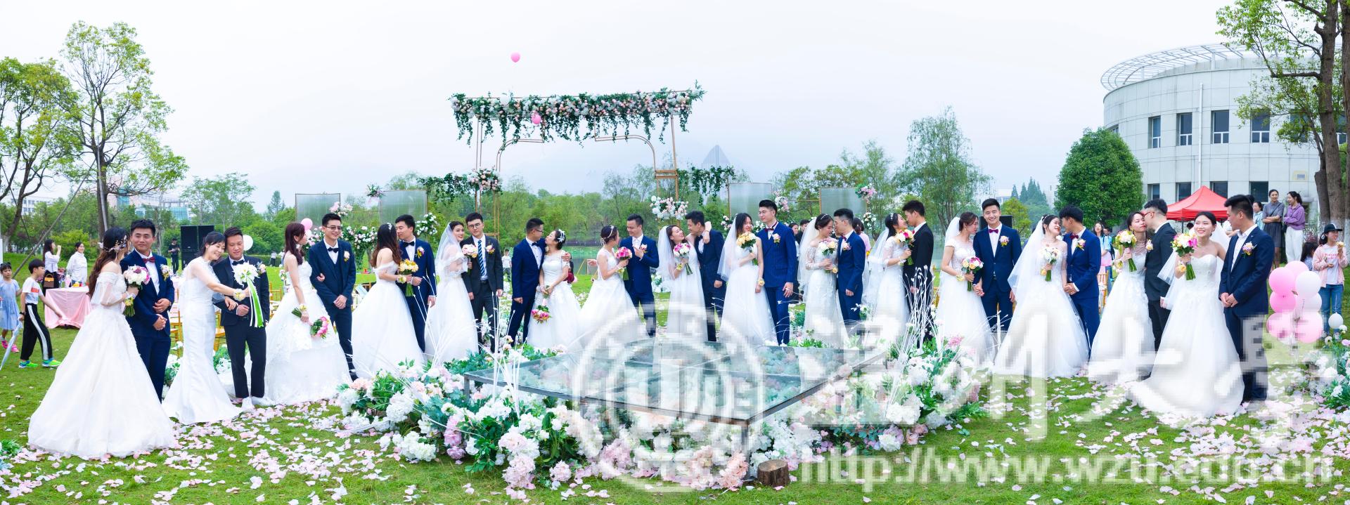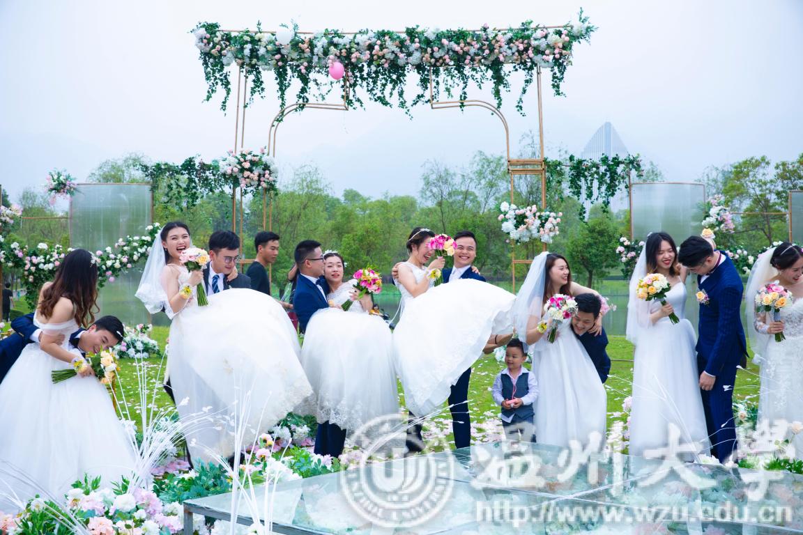 温都讯 5月19日,为庆祝少妇白洁 办学86周年,少妇白洁 第二届校友集体婚礼于茶山校区明心湖畔火热进行。15位新娘穿上嫁衣,与那个他十指紧扣,走进了温大第二届校友集体婚礼。