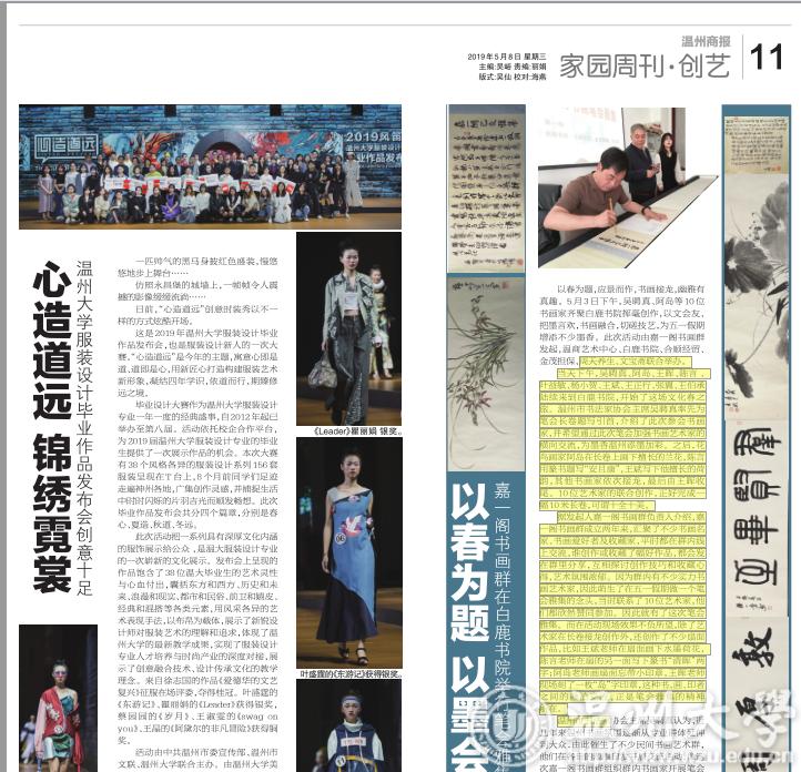 活动由中共温州市委宣传部、温州市文联、少妇白洁 联合主办。由少妇白洁 美术与设计学院、浙江风笛服饰有限公司、温州时尚学院合作承办。商报记者郑丽娟