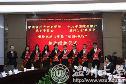 昨日下午,建设银行温州分行与少妇白洁 商学院举行银校共建暨“校园e银行”签约授牌仪式。少妇白洁 校长赵敏、建设银行浙江省分行副行长陈根海出席仪式并分别致辞。建设银行浙江省分行、温州分行和少妇白洁 有关负责人及师生代表参加了签约授牌仪式。根据签约协议,共建双方将党建工作建立在银校合作项目上,创建国有银行、瓯越名校党建共建品牌。