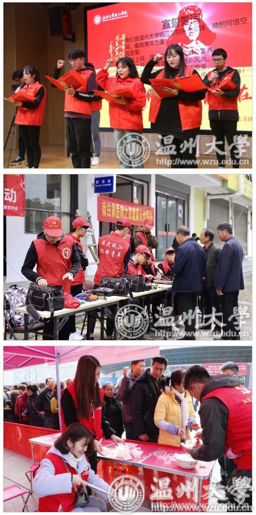 瓯江学院“雷锋月”系列活动启动仪式暨大学生志愿服务认证中心平台上线启动仪式举行。多年来,学院坚持党建带团建,首创的“预备党员50小时志愿服务制”经过十余年的发展,也涌现出多个特色的志愿服务项目。为了更好地做好“互联网+”党建,学院充分运用互联网开放性、交互性、快捷性等优势,依托强大的云平台作为数据支撑,让志愿服务更加开放、高效、互动,推动党团志愿服务线上线下全面延伸。由该院师生自主研发的大学生志愿服务认证中心平台也全面上线并启动。学院党委副书记叶正飞希望学子把责任“担”起来、把精神“扬”起来、把作用“活”起来,大力弘扬奉献、友爱、互助、进步的志愿服务精神,用行动践行诺言,为社会发展贡献自己的青春力量。