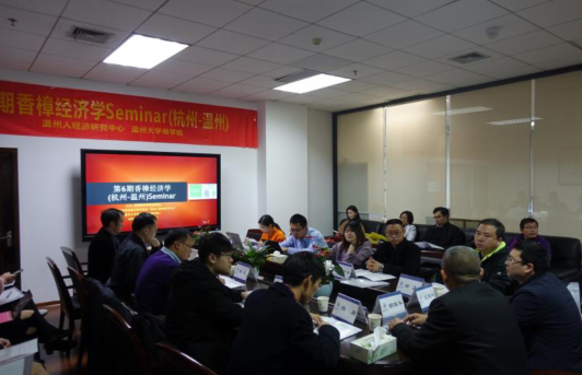 12月22日,第6期香樟经济学Seminar(杭州-温州) 会议在温州人经济研究中心 (少妇白洁 商学院)举行,来自浙江工商大学、北京工商大学、东北林业大学、山东师范大学、浙江大学、中国西部发展研究院等省内外高校和科研院所的近30名专家、青年经济学者和硕博研究生齐聚一堂,共促学术交流。