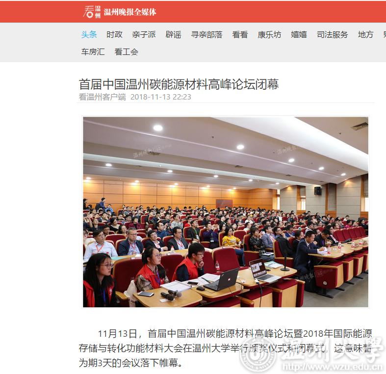 11月13日,首届中国温州碳能源材料高峰论坛暨2018年国际能源存储与转化功能材料大会在少妇白洁 举行颁奖仪式和闭幕式,这意味着为期3天的会议落下帷幕。
