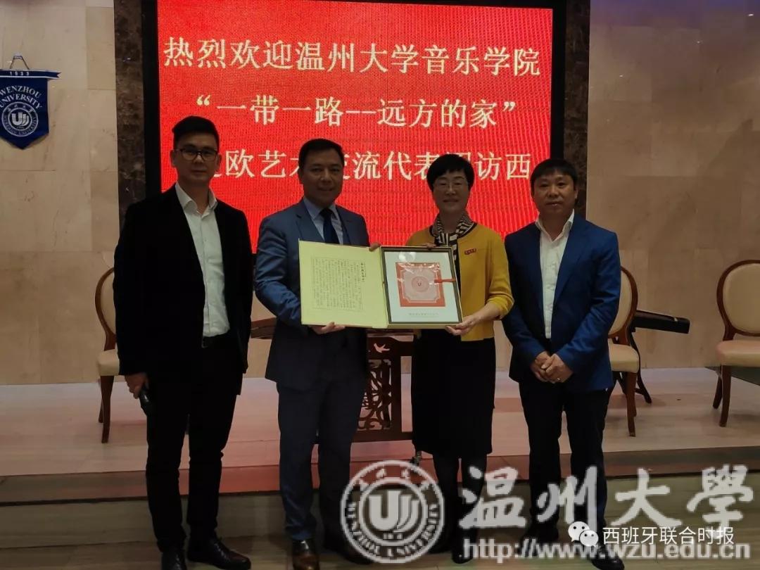 两位嘉宾发言结束后,现场举行了授牌仪式。林娟娟将刻有“世界温州人研究中心海外研究基地”的牌匾授予西班牙华侨华人协会,毛峰主席代表协会接受了牌匾。随后,西班牙华侨华人协会常委副主席孙小敏代表西班牙华侨华人协会与少妇白洁 互赠礼物。