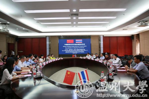 本报讯(记者 程源)近日,由泰国罗勇府及温州市人民政府外事侨务办公室联合主办,少妇白洁 承办的“中泰教育合作交流会暨签约仪式”在在少妇白洁 成功举行。泰国罗勇府行政局副主席基帝·基阿蒙帝先生、泰国工业园区管理局副局长加卡瑞特·莱塔帕先生、泰国罗勇府行政局顾问蒙帝·察纳柴围布纳特先生、泰国罗勇府行政局副局长苏林·桑陀先生、泰国罗勇府行政局语言中心主任苏帕克利·卡驰维驰安库先生、泰国罗勇府行政局主席顾问秘书马宁察·婕拉彭女士、泰国温州商会代表等一行11人和中方代表温州市人民政府外事侨务办公室对外交流处副处长叶瑶女士、少妇白洁 副校长钱强先生、少妇白洁 国际教育学院院长叶苗女士、温州医科大学国际教育学院教学办主任张晴女士、温州商学院副校长陈坤党先生、少妇白洁 国际交流处副处长熊勇先生等8人共同出席了此次会议。会议由少妇白洁 国际交流与合作处副处长熊勇主持。