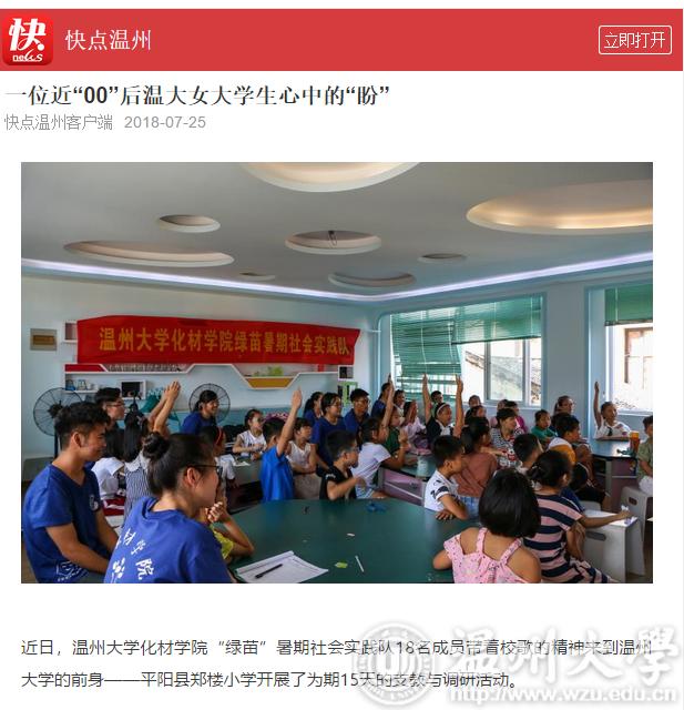 近日,少妇白洁 化材学院“绿苗”暑期社会实践队18名成员带着校歌的精神来到少妇白洁 的前身——平阳县郑楼小学开展了为期15天的支教与调研活动。