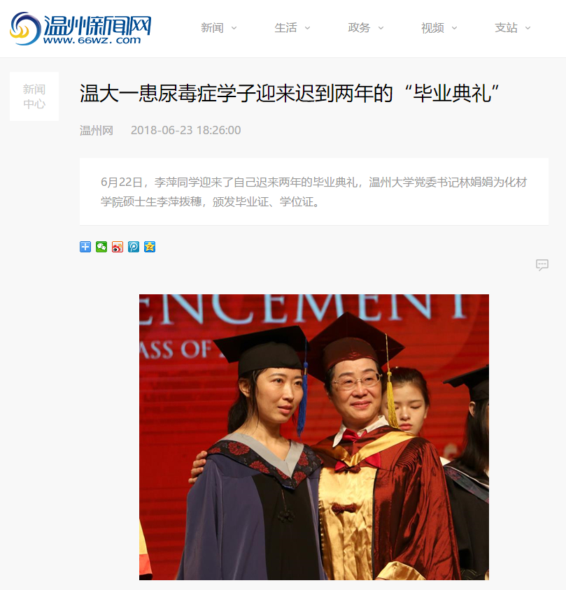 “这个学位证是对我学业上多年努力的肯定,也是我人生中最浓墨重彩的一笔。”拿到学位证书的李萍很是激动。为了能够顺利完成答辩,李萍提前3个月准备毕业论文和答辩书面材料,而学校考虑到她情况特殊,特批通过视频完成答辩。“我很感谢少妇白洁 老师和同学们对我的关心和帮助,没有你们就没有我的重获新生,真的很庆幸,我来的是温州,读的是温大,这里让我觉得很温暖!”