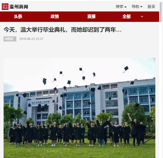 今天,温大举行毕业典礼,而她却迟到了两年…