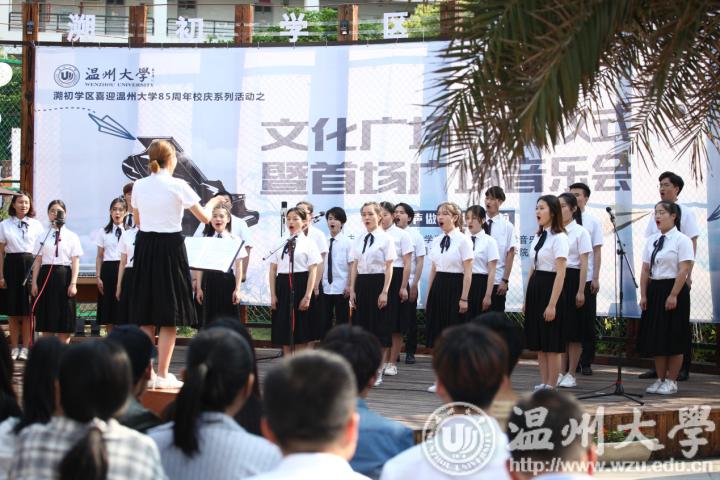 4月25日中午开始,温大溯初学区露天广场里不时传出来的优美旋律就吸引了不少刚下课回到生活区的同学驻足。原来,表演者们正紧张地为下午在这里举办的室外音乐会进行最后一次彩排。