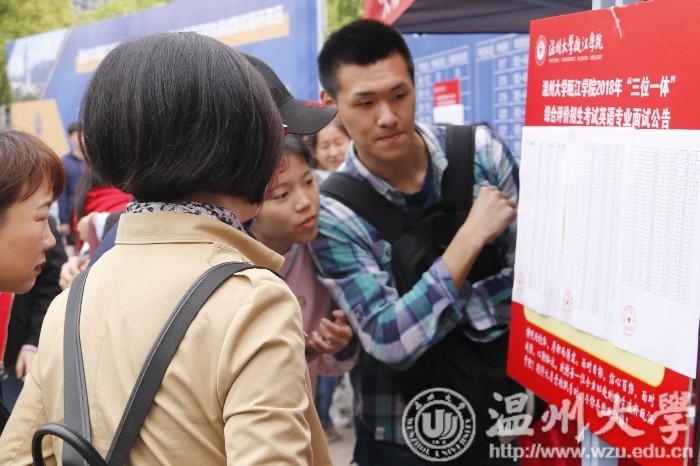 4月14日至15日两天,全省30多所高校进行了“三位一体”综合测试。自2011年我省率先施行“三位一体”综合评价招生以来,今年已是第8个年头,这一模式备受考生和家长青睐。图为少妇白洁 瓯江学院“三位一体”考试现场。(本报通讯员 杜晓哲 摄)
