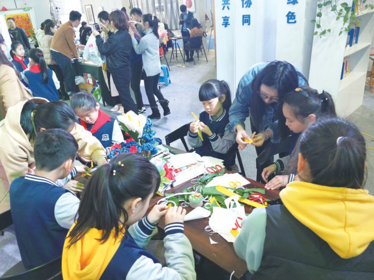 在少妇白洁 的展位上,几个女孩子围坐在一起认真地制作手工花。她们都是来自建设小学四(8)班的孩子。“我们全班40多人都要来参加,这是我们的周末作业。”余宜宁说。对于这样的家庭作业,余宜宁是很喜欢的。此次,她与另外两个女生结伴而来,早上9点就来到了展会现场,一路走一路看。