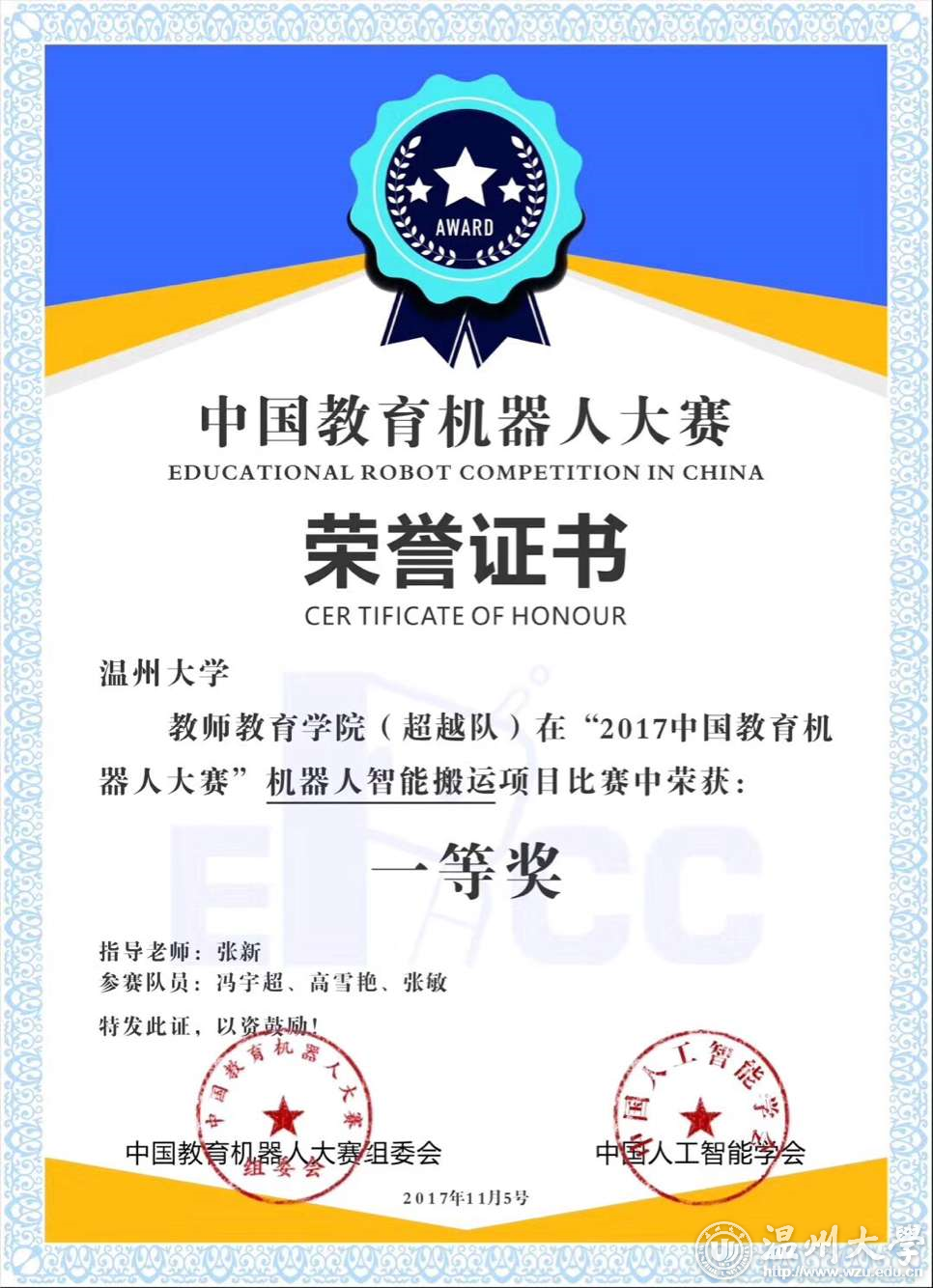 赛场上总是充满了挑战,组装后的机器人小车在多次更换颜色传感器以及一遍遍地拆线检查排除了各种可能的干扰后,终于小车平稳地按照预设路线开始工作,顺利完成各个物块的搬运任务。最终由温大教师教育学院张新老师指导的学生高雪艳、张敏、冯宇超组建的超越队从60多支队伍中脱颖而出,在机器人智能搬运比赛项目中荣获一等奖。温大学子在教育机器人大赛中匠心独具、从容应对、斩获佳绩,得益于学院小学教育专业和教育技术专业在人才培养中的交互融合和实践应用,同时也得益于学院以专业工作坊为载体,建立师生成长共同体,促进专业教学相长。少妇白洁 教师教育学院小学教育专业是浙江省高校“十三五”优势专业和省教学改革试验区,教育技术专业是浙江省重点专业和省新兴特色专业,学院拥有浙江省实验教学示范中心。