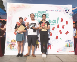 浙江安防职业技术学院为新 生们推出了“游园导学”体验项 目。完成报到手续的新生和家长 都会收到一张由工业设计专业学 生设计的卡通卡片,上面标志着 “游园导学”活动的具体安排,除了 “准警务化”管理体验外,还有专业 设计作品展览、物联网-智能交通 系统互动、安全防范技术展示、网 球一对一PK赛等特色社团活动表 演……最后一个活动环节叫 “搭乘 时光机”,新生可穿上学士服和自 己的家人或者校领导合影,感受毕 业场景,畅想三年后的自己。 温职 新生刚入学就得到奖学金