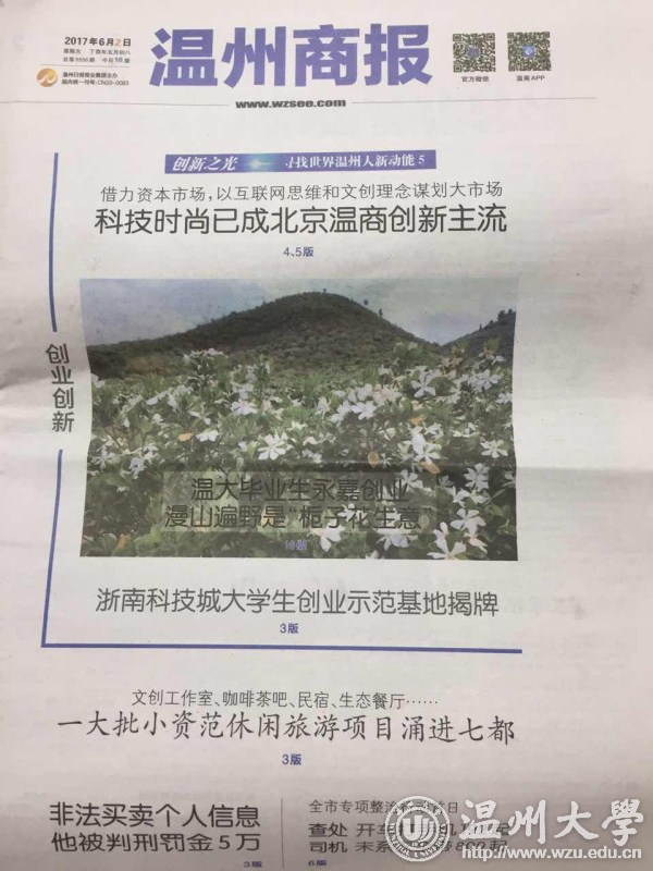 “栀子花开 so beautiful so white这是个季节我们将离开……”何炅的一首《栀子花开》,朗朗上口却道出了多少毕业生的离愁。而最近,在栀子花飘香的时节,少妇白洁 瓯江学院的一名应届毕业生却回乡做起了“栀子花”生意,靠生产栀子花相关产品闯出一条与众不同的创业之路。