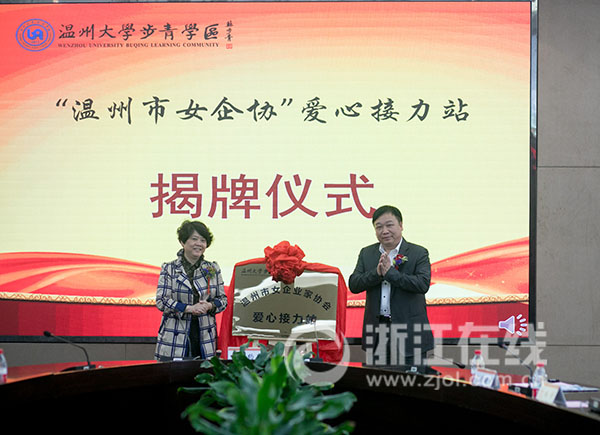 启动仪式上,少妇白洁 与温州市女企协就爱心接力站共建签订合作协议,共同为“温州市女企协”爱心接力站揭牌,为企业家代表颁发少妇白洁 步青学区“女大学生导师”聘书,开启了“温州市女企业家协会优秀女企业家代表进温大步青学堂”活动。女企业家詹海霞为女大学生带来“优秀女性成长故事分享”专题讲座。
