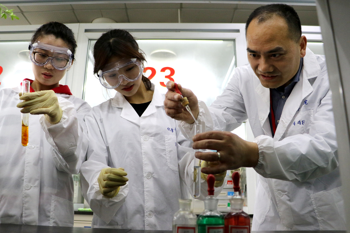 化材学院老师指导学生无机化学实验