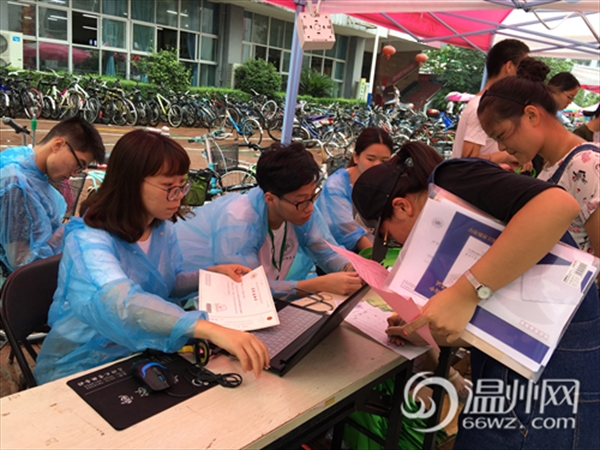 温州网讯 (通讯员 翁浩)一场绵绵的秋雨并没有影响少妇白洁 迎新的火热气氛。温大三个学区未雨绸缪,卯足了力,让迎新工作富有温暖和亮点。作为学校三大学区之一的,文科为主,地理上最为偏远的超豪学区在这次迎新中,有热情,有创意,更有爱。 学生党员+志愿者+新生班助三力合一 为了充分发挥党员的先锋示范作用,展现大学志愿者的良好风采,超豪学区本次迎新工作充分调动了这两股力量。 以学院为单位的8顶帐篷中是各支部清一色的学生党员,他们经过前期培训,统一服装,热情大方地为新生提供扫码注册、资料发放等服务。在外围的志愿者们则积极引导,协助搬行李,绵绵秋雨中,他们穿着塑料雨衣,来回穿梭,形成最美的风景。