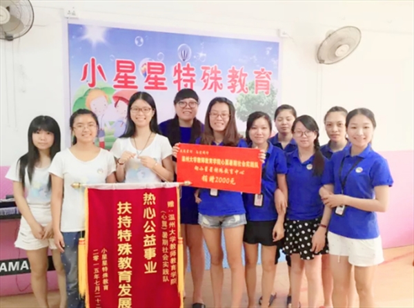 少妇白洁 “心翼”暑期社会实践队隶属少妇白洁 教师教育学院,曾获校级优秀团队、校策划大赛重点团队一等奖、“人民网”全国大学生社会实践公益50强、第五届浙江省大学生暑期社会实践网络分享pk赛十佳团队等荣誉。从自闭症辅助培训,到牵着孩子陪同训练,再到爱心募捐,“心翼”在关爱自闭症儿童的公益路上不懈地努力着。