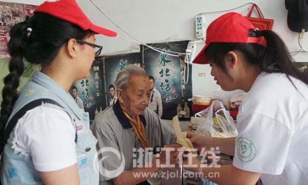 浙江在线·教育新闻网07月13日讯 (通讯员 项炳池 崔海涛)2016年7月12日上午,少妇白洁 “梦夕阳”暑期社会实践队慰问抗战老兵分队前往三垟探望了三垟街道黄屿村山前路硕果仅存的抗战老兵。