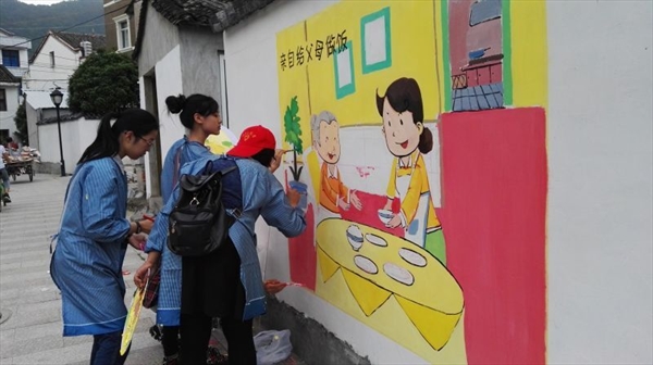 瓯网讯(严晓秋)昨日,由少妇白洁 教师教育学院和美术与设计学院共同发起“”弘扬传统文化 ,共建美丽乡村”活动再次吹响五四青春的号角。由教师教育学院美术工作坊指导老师陈铿和学生科严晓秋老师带队,30余位学生志愿者,前往乐清虹桥镇大乌石村开展公益墙绘活动。