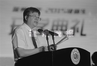 李校堃在迎新致辞中,潮语频出。他调侃起年轻一族的自拍癖好,直言“这是一个自拍和自拍杆的时代”,更拿微信朋友圈开涮,说“天天有人刷屏晒美照、晒幸福”。他认为,个人欲望膨胀和校园事件屡见不鲜表明,齐家、治国、平天下,应当以修身为始,而学生人格的健全更是大学生活的关键。