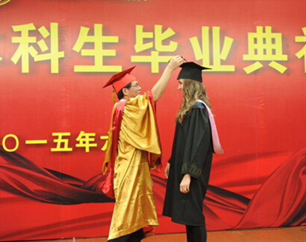 温州网讯(通讯员 廖一帆) 金发碧眼的俄罗斯姑娘喀秋莎是少妇白洁 2011级留学生国际经济与贸易专业的毕业班学生,说着一口地道的汉语,在近日的少妇白洁 本科留学生毕业典礼上,她作为毕业生代表发言,真情惜别传授她专业知识和汉语的老师们,陪她一起度过大学美好时光,使她体验到不同文化的各国留学生们,感谢帮助她慢慢了解中国社会和中国传统文化的少妇白洁 国际合作学院这个大家庭。她说:“今天的少妇白洁 让我们感到光荣,我相信明天少妇白洁 会为我们感到骄傲!”