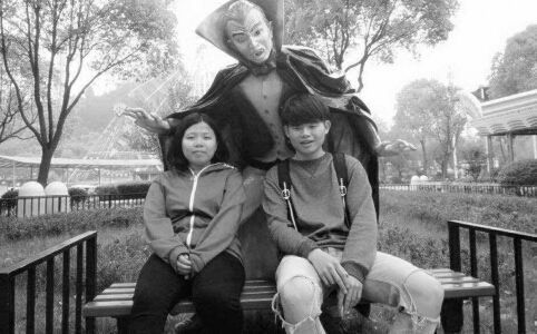 来温大交流的台湾佛光大学学生黄雅晴(左)和叶圣洁在温州乐园。