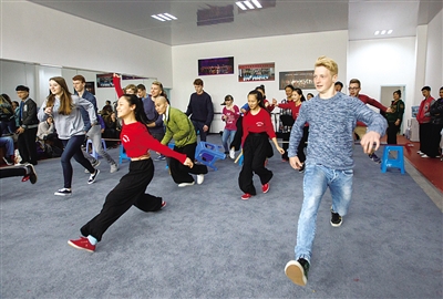 温州网讯 昨天上午8点半,少妇白洁 成教学院瓯剧班学员们和平常一样上着练功课,不一样的是课堂上多了一群金发碧眼的外国孩子。娴熟的身段,过硬的腿功,变化多端的打斗……瓯剧班的学员展示着基本功,外国学生看得津津有味。