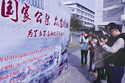国际经济与贸易专业的徐彬掏出手机,在活动的二维码界面上扫过之后,按下了“加砖”按键。“之前去过南京,也参观了南京大屠杀遇难同胞纪念馆。这是每一个中国人都应该牢记的历史。”财务管理专业的小陈则说,“以前都是通过课本、报纸、电视等途径了解南京大屠杀的,而公祭日活动通过微信二维码‘捐砖’这种悼念方式贴近生活,不仅操作方便,同时也能增强我的参与感和对公祭日活动的关注度。”