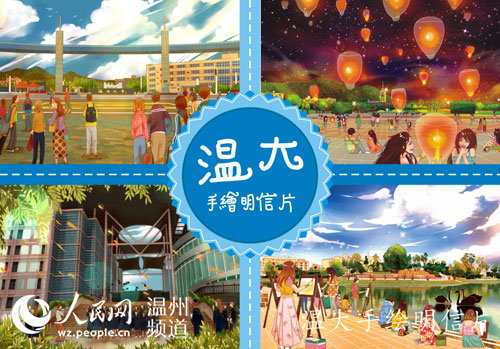 当孙梦梦看到厦门大学、浙江大学、清华大学等名校都有手绘明信片时,就突发奇想:“温大也可以有自己独特的手绘明信片。”她创作手绘明信片的初衷不仅是为了创业,更想纪录下在校生活的点滴,让毕业生拥有温暖的回忆。