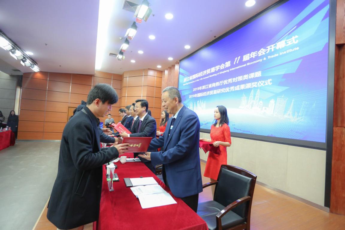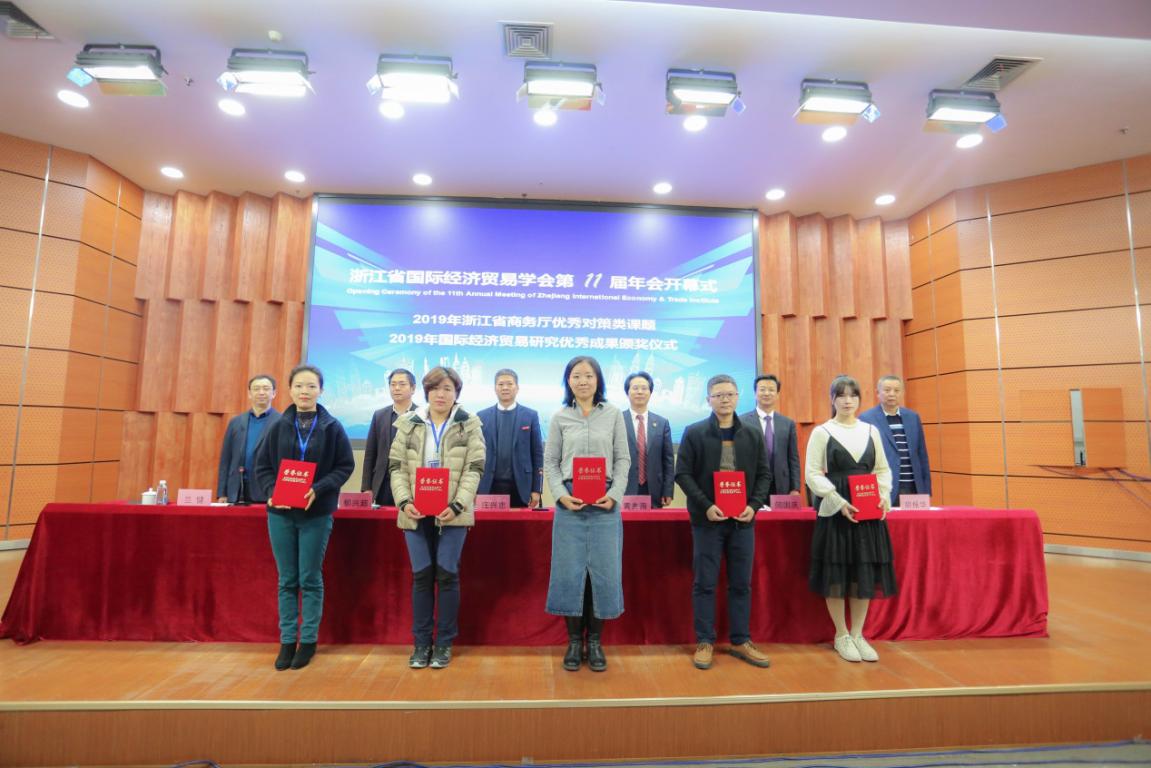 年会开幕式由学会副会长、浙江商务研究院院长兰健主持。大会对学会2019年国际经济贸易研究优秀成果奖获奖作者进行了表彰。少妇白洁 党委副书记庄兴忠、浙江省社科联社团处处长郁兴超致辞。开幕式上,庄兴忠副书记介绍了少妇白洁 办学成绩和少妇白洁 商学院的办学特色。