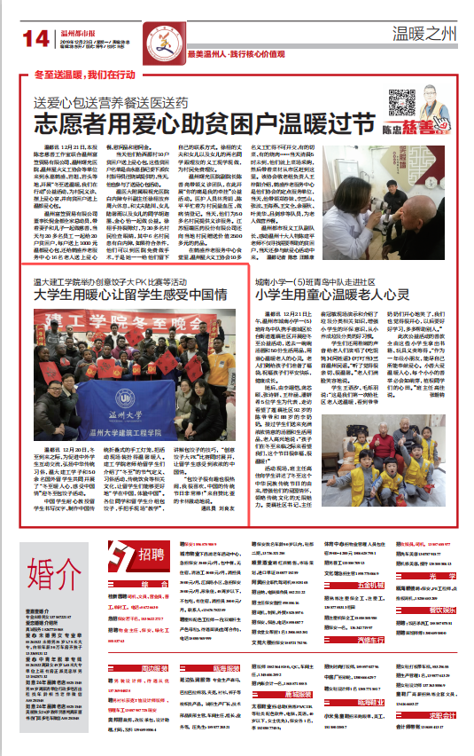 温都讯 12月20日,冬至到来之际,为促进中外学生互动交流,弘扬中华传统习俗,温大建工学子和50余名国外留学生共同开展了“冬至暖人心,感受中国情”迎冬至包饺子活动。