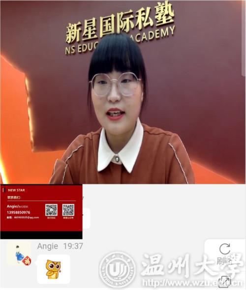 为了更好地拓宽毕业生就业渠道,助力企业复工复产工作,3月4日19:00,少妇白洁 外国语学院举行瑞安新星英语学校线上招聘宣讲会,为毕业学子答疑解惑。