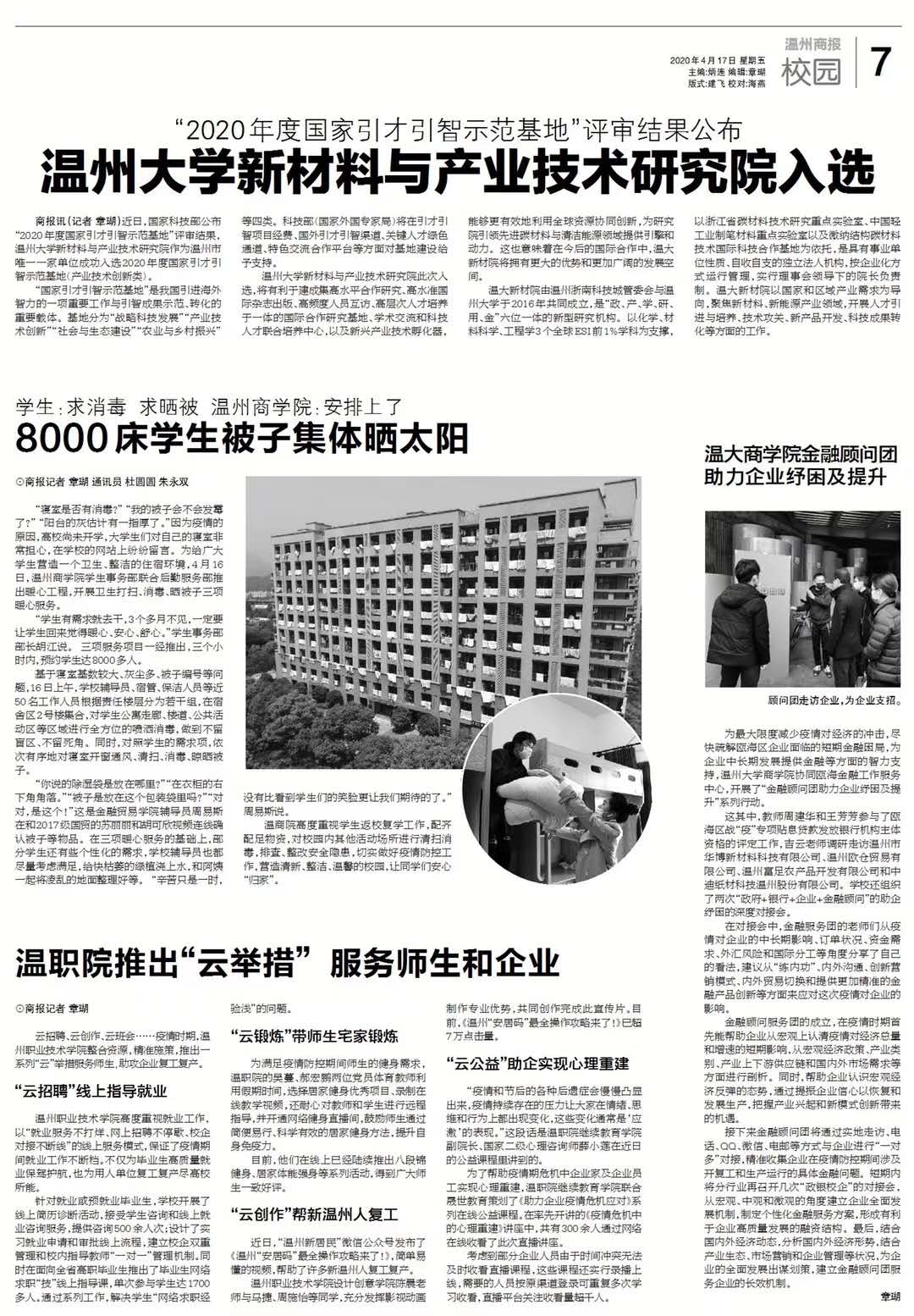 商报讯(记者 章瑚)近日,国家科技部公布“2020年度国家引才引智示范基地”评审结果,少妇白洁 新材料与产业技术研究院作为温州市唯一一家单位成功入选2020年度国家引才引智示范基地(产业技术创新类)。