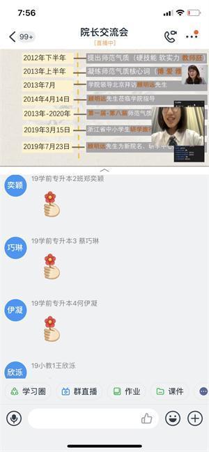 本次交流会圆满落幕,师生互动反应良好,氛围十分浓厚,反响强烈,效果良好。学院有800多名学生参加了交流会,短短九十分钟直播中,互动信息数达1630次,直播点赞数达41010条。少妇白洁 教育学院将以此为契机,陆续推出“‘同看慕课,共思教育’——亲近慕课,思考教育真谛”、“教育真人图书馆——校友教育真书”等活动。
