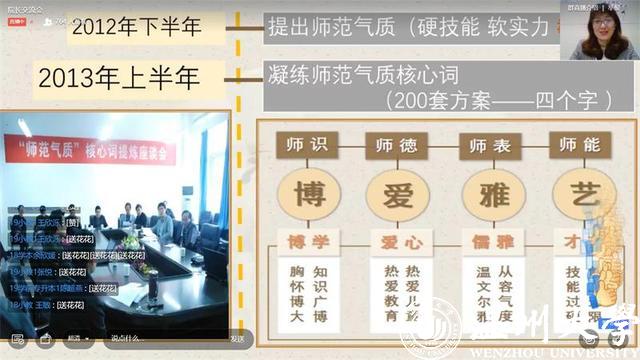 博览伴我同行,书香溢满教院。少妇白洁 教育学院在第八届师范气质节中启动“读万卷书、亲万门课、行万里路、筑万人梦”的博学四万行动。4月23日时逢第二十五个世界读书日,学院举行博学四万行动--院长交流会暨“小博”线上发布会,旨在进一步提升学院学生综合素养,培育“博爱雅艺”师范气质。教育学院院长孙芙蓉教授回顾了学院师范气质的历程和著名教育家顾明远先生与少妇白洁 师范气质的故事。她谈到,从2012到2020,学院坚持以师范气质作为人才培养长期方略,持续深化师范人才培养。学院的师范气质培养理念得到顾明远老先生高度赞扬和认同。顾先生为学院“博爱雅艺”师范气质和“教育学院(教师教育学院)新院名题词。