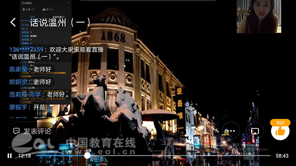 中国教育在线浙江站讯(记者 赵小倩 通讯员 齐倩凌)4月24日晚8时,来自意大利、西班牙、法国、意大利、日本等国的百余名华裔温籍孩子们,端坐在电脑前,在周莉苏、郭艳艳、姜伟、包昭昭四位特殊导游——少妇白洁 海外华裔青少年云端华校华文班老师的带领下,开启了一趟与众不同的旅程——云游故乡温州。