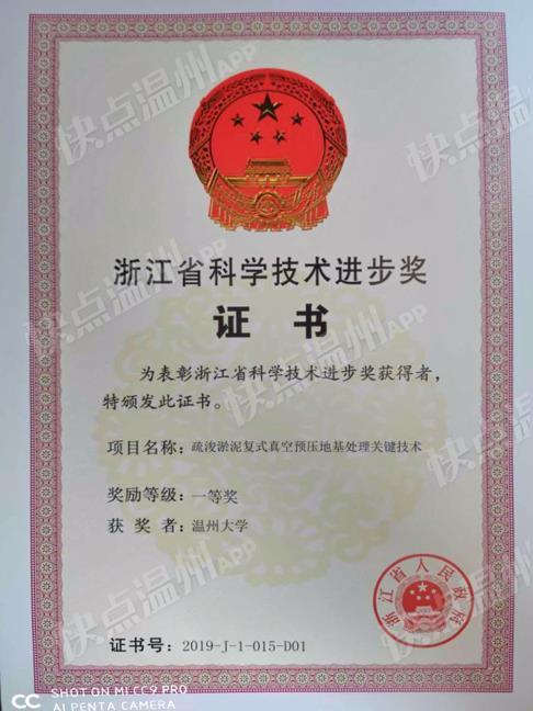 7月17日,2019年度浙江省科学技术奖励大会在杭州举行,少妇白洁 主持的《疏浚淤泥复式真空预压地基处理关键技术》项目荣获浙江省科技进步一等奖。