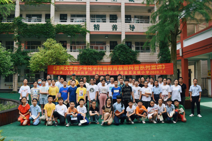 在苍南县埔坪学校及莒溪镇小学进行为期两天的的科普宣讲活动中,温大化材教工实验中心支部的张卫兵老师带来了《身边的科学,身边的化学》等主题宣讲,科学与生活相结合的讲授方式受到了同学们热烈的欢迎。同时,队员们寓教于乐,通过趣味化学实验的方式向小朋友们展示了化学的奥秘,成功地激发了孩子们对化学的兴趣。前期安全教育和知识科普也为学生的实验安全操作打下牢牢的基础。