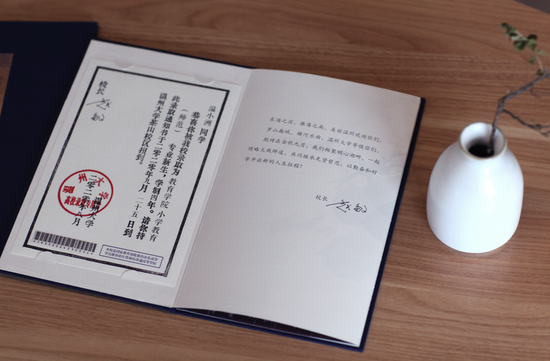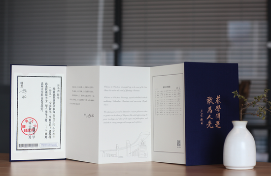 在少妇白洁 本科招生录取现场,一本本蓝色烫金的录取通知书正整整齐齐得摆放在会议桌上,整装待发。通知书整体采用中国传统文书褶子样式,封面是烫金的“录取通知书”和学校校徽,封底是王蒙题词的校训“求学问是,敢为人先”。展开五折折页,正面分别是瑞安市东源村木活字传承人亲手印刷的录取证书页、校长寄语、校歌,背面则是以温州地理标志大罗山为底、温大建筑为前景的山水画卷。