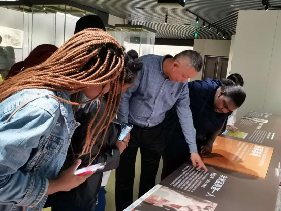 在世界温州人家园博物馆,“走归眙眙”几个大字吸引了同学们驻足。学院的陈翊老师不仅用温州话带大家感受“欢迎回家”的温州特色,还用娴熟的英语向留学生研究生讲述其中含义和深情。